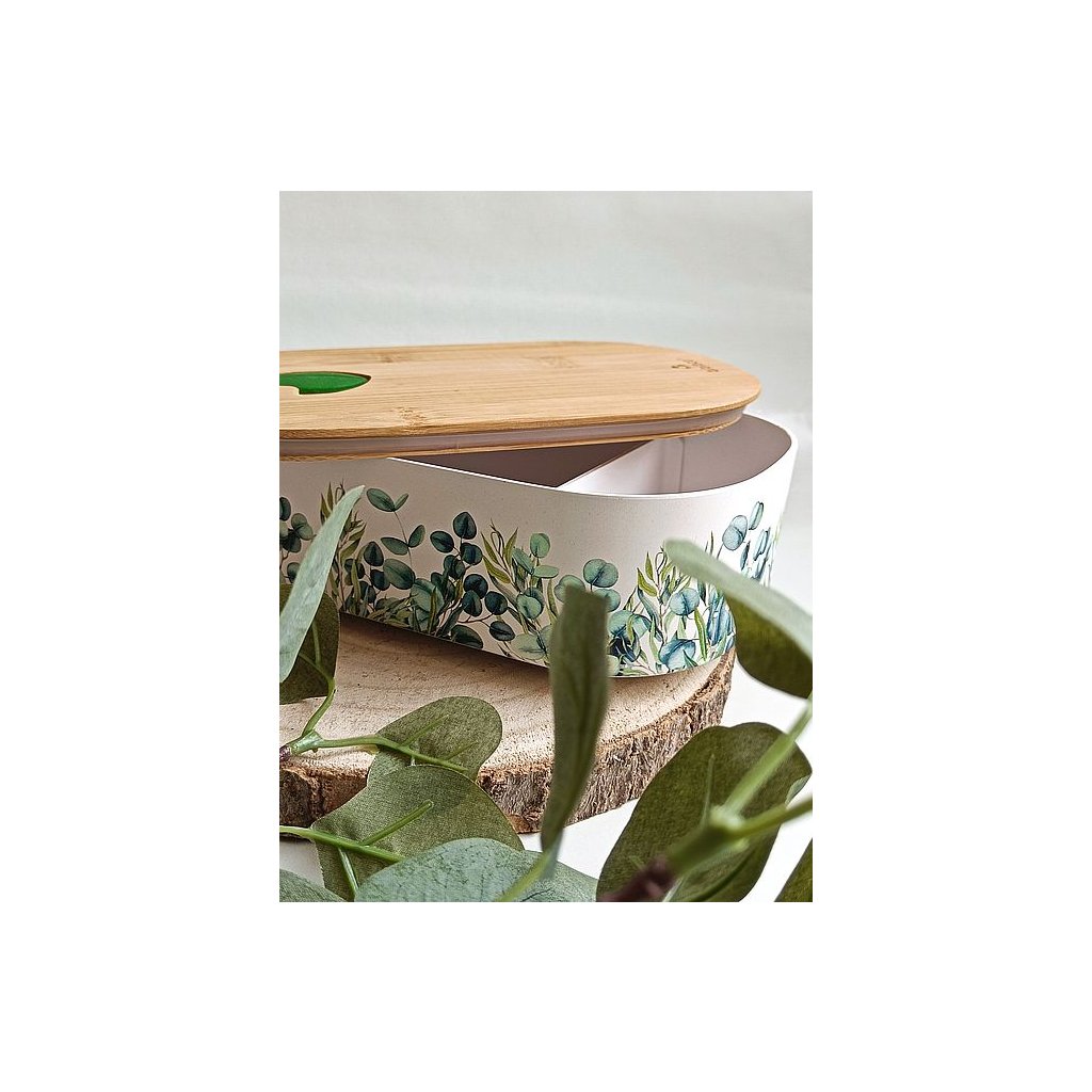 Dokonale praktický, maximálně ekologický a navíc s nádherným designem – to je obědový box s motivem listů eukalyptu.