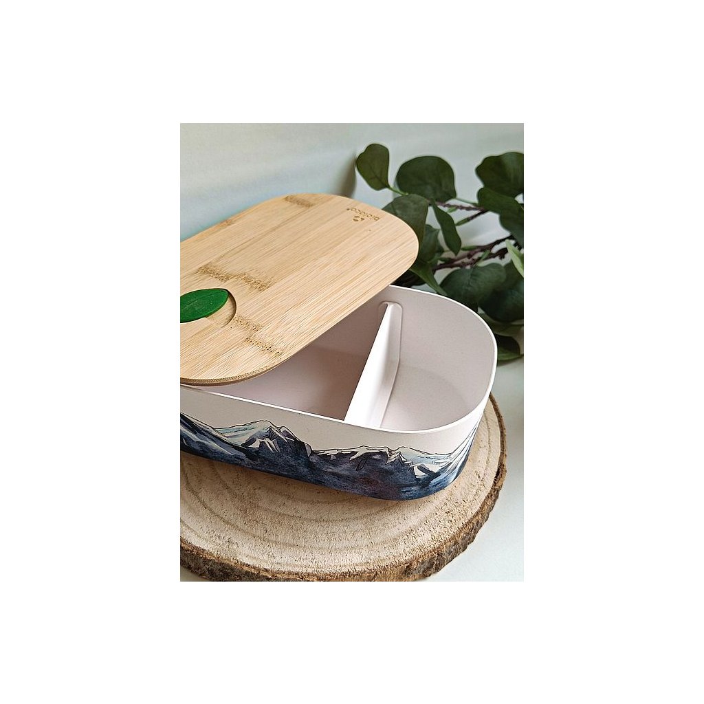 Je jedno, za jakým dobrodružstvím se zrovna vydáváte. Ekologický obědový box Mountains s motivem zasněžených hor vám bude skvělým parťákem na cestách, ale nosit si v něm oběd můžete i do školy nebo do práce. Za všech okolností se na něj můžete spolehnout – díky odvzdušňovacímu ventilu v bambusovém víčku má ještě lepší těsnění. Posuvná přepážka uvnitř vám zase umožní přenášet více jídel bez toho, aby se v boxu smíchala. Navíc jej můžete (bez víčka) svěřit i myčce nádobí nebo v něm jídlo ohřívat v mikrovlnné troubě.