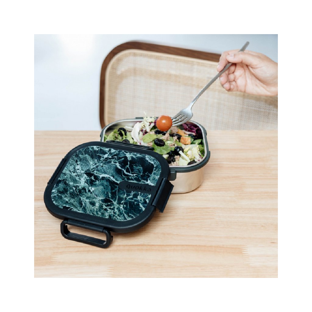 Vzít si jídlo s sebou a nemít strach z toho, že vyteče do batohu nebo kabelky? Jasně! Představujeme vám nerezový lunch box Quokka black marble.