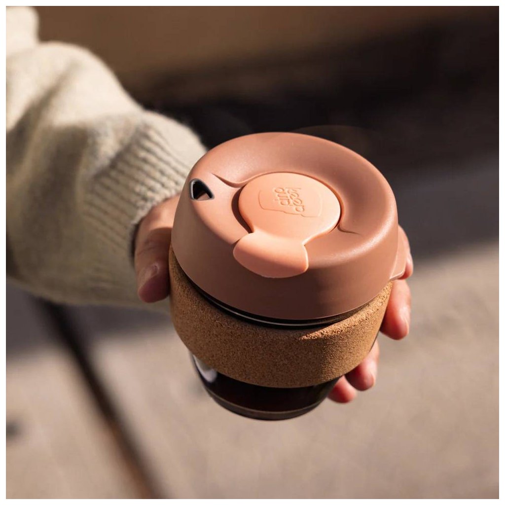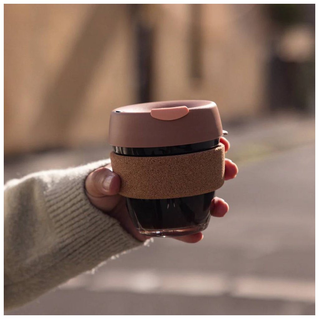 Kafe do plastového kelímku? Ne, díky. Vychutnejte si své flat white, cappuccino nebo třeba cold brew raději ze skleněného cestovního hrnku KeepCup Brew Cork! Bude to zážitek, protože: