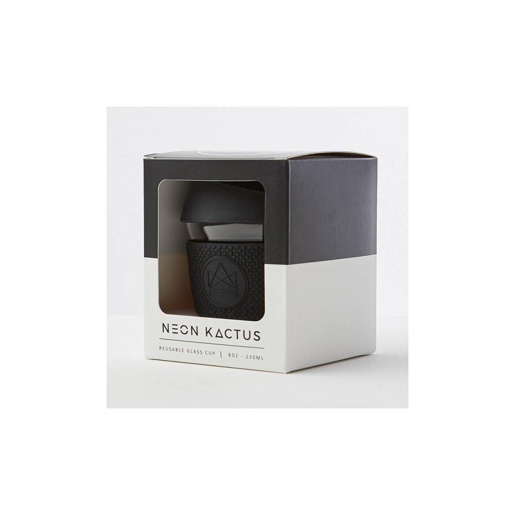 Sbohem, jednorázové plastové kelímky! Skleněný hrnek Neon Kactus v černém provedení je udržitelným řešením a dá vaší ranní kávě nebo čaji styl.