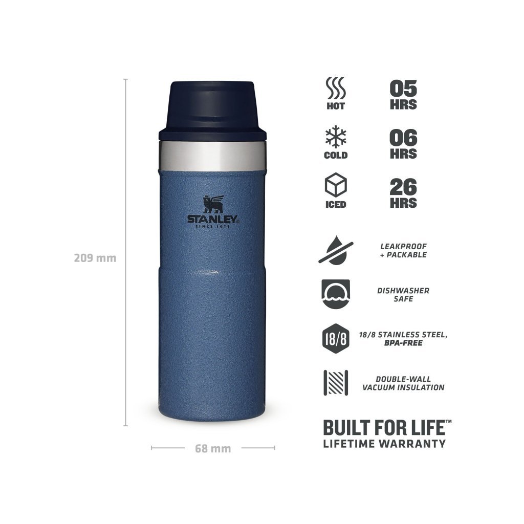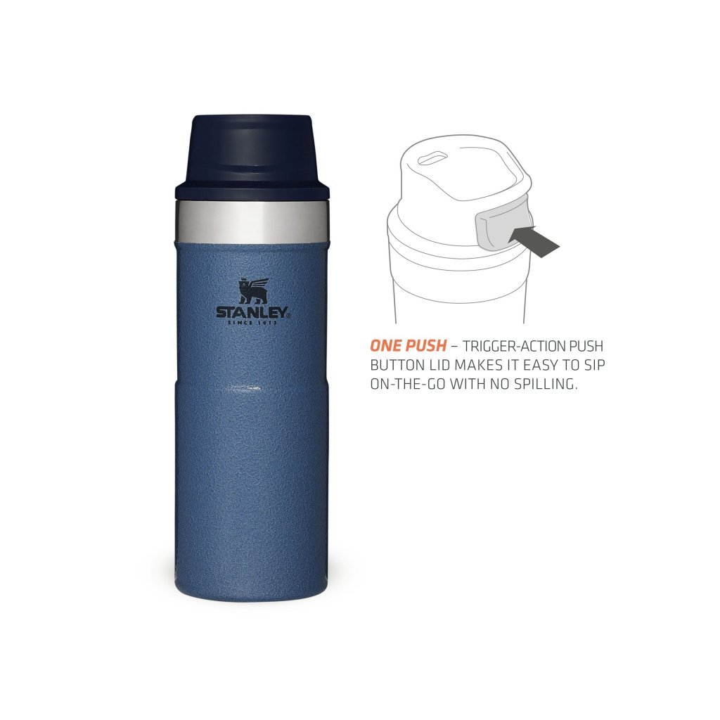 Hledáte nejlepší termohrnek do auta? Je to hrnek do jedné ruky Stanley Classic series, bestseller značky, který se snadno ovládá, udrží nápoj teplý i ledově vychlazený a 100% těsní!