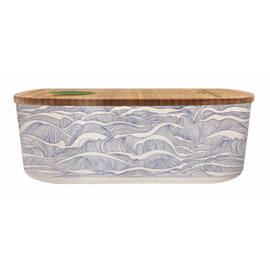 Ať už se chystáte na pláž, nebo cestujete kamkoliv jinam, ekologický box By the sea s motivem mořských vlnek bude tím pravým místem, kam uschovat vaši svačinu. Získá si vás nejen svým povedeným designem, ale i po praktické stránce.