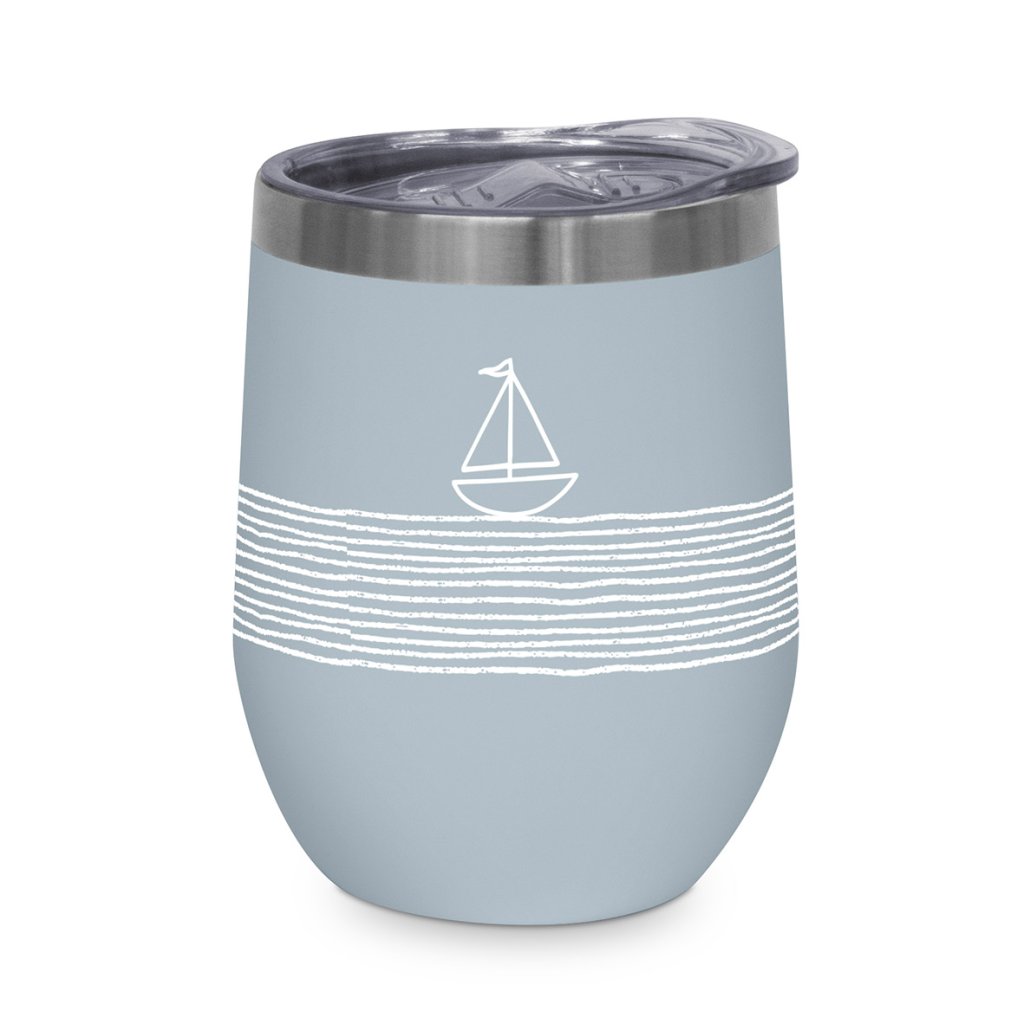 Vyplujte vstříc nekonečnému dobrodružství s nerezovými termohrnkem na kávu či čaj v jemně modré barvě s designem loďky.