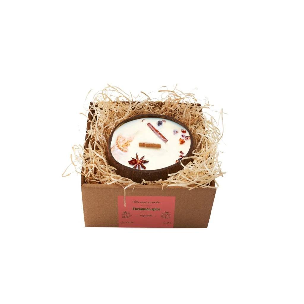Veganská svíčka v kokosu v dárkovém balení - Christmas spice (Vánoční směs)